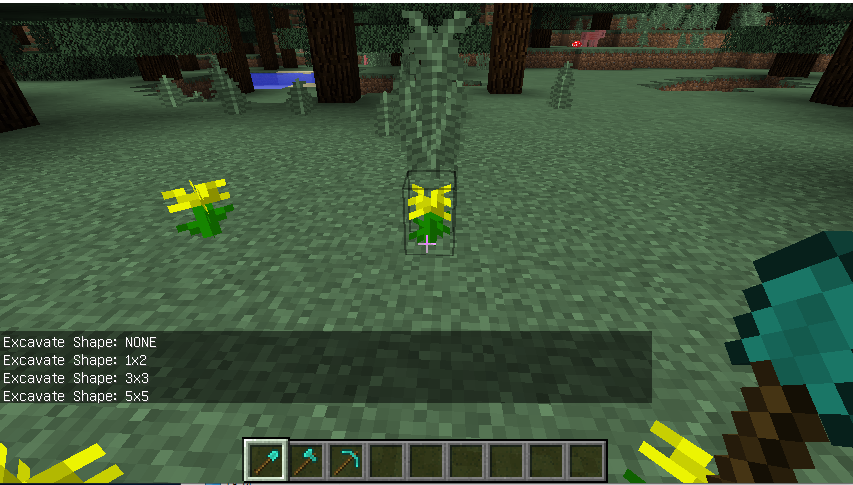 꽃 기준으로 v키로 5x5를 맞추고 Excavate인 ~ 를 누른 상태로 채굴을 시작해봤습니다